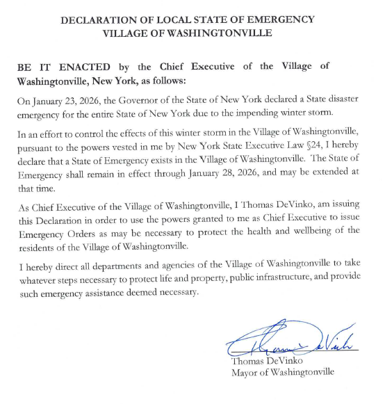 Village of Washingtonville – Emergency Weather Notice