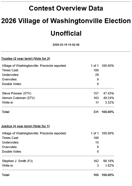 For the fiscal year 2026/2027 budget review the Comptrollers office was on site for one day and finished their review remotely over a two-week period. The Village staff provided all of the requested information within the State’s deadline. At the conclusion of their review an exit call was scheduled with the Village and their comments were discussed with the Village staff. At this time the Village articulated that they were not in agreement with some of the State’s findings. Unfortunately, the Village was informed by the State that their comments are purely recommendations, and they will not be modified. The State issued their final letter on January 22, 2026.